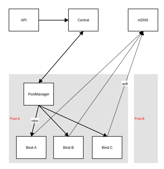 - pool_manager通过rndc(addzone/delzone/notifyzone)三个操作来通知pool_targets中定义的bind来进行操作